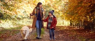 Family walking during the fall